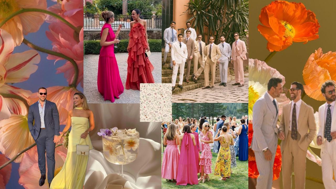 En stilren klänning i ljusa eller blommiga toner – tänk "jag är här för bröllopet, men jag skulle också platsa i ett modemagasin om någon tog en spontan bild vid syrenbusken". Hellre pasteller än svart – det här är ett bröllop, inte en noir-premiär.